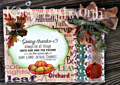 All of the designers cards are gorgeous. Again, so many beautiful and unique designs. I love all the colors and to see how everyone used the scripture. I think we are all living life in the fast lane and forgetting to stop and THANK GOD for ALL OF HIS BLESSINGS. Even the ones we cant see. God bless you all. Thank you for the reminder that we are all human. We all have the same fears, emotions, hurt ... but we also have each other. Lifting one another up in prayer. And we have a Father who loves us and is ready to pick us up when we are weak and hold us and comfort us and give us strength.