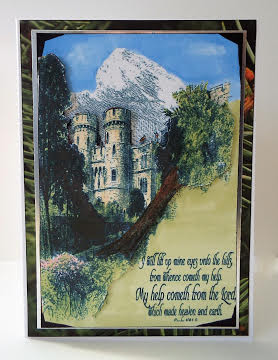 Our word art for this challenge is found in Psalm 121:1-2 which says, "I will lift up mine eyes unto the hills, from whence cometh my help. My help cometh from the Lord, which made heaven and earth". This is such a beautiful verse, and is extra special to me because I can actually remember when I was a small girl and my Grandfather would recite this verse in the mornings as he looked out his kitchen window towards the nearby hills. He would call on God to bless his day and guide him through it. What a beautiful testament for me to have witnessed as a child. I learned that when I'd start my day by calling on God to sustain me...I could count on His presence in my day to protect me and bless me. Never underestimate how powerful a message we send our children, grandchildren, and others when they see us read our Bible, hear us recite scripture, listen to and watch us pray, and gradually....we make an impact on their lives for the Lord, Jesus Christ. Our help cometh from the Lord who made heaven and earth, and God will always give us what we need to get through any trial. Lift your eyes up to Him, and always remember to call on God when you need help. He's always there for us.